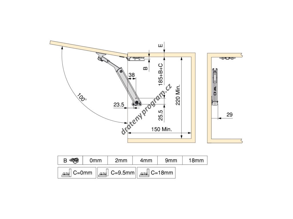 Výklopny mechanismus pro dvířka Altius One, 1440-2200 (H), nikl