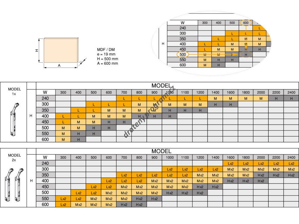 Výklopny mechanismus pro dvířka Altius One, 576-969 (L), titan