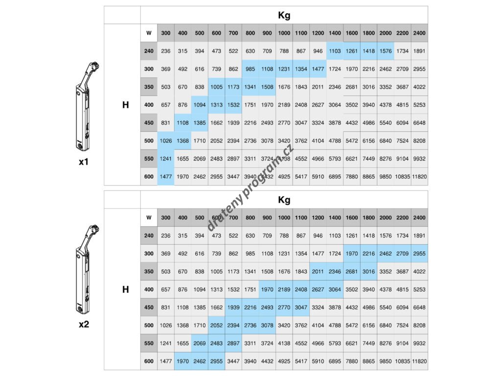 Výklopny mechanismus pro dvířka Altius One, 940-1710 (M), nikl