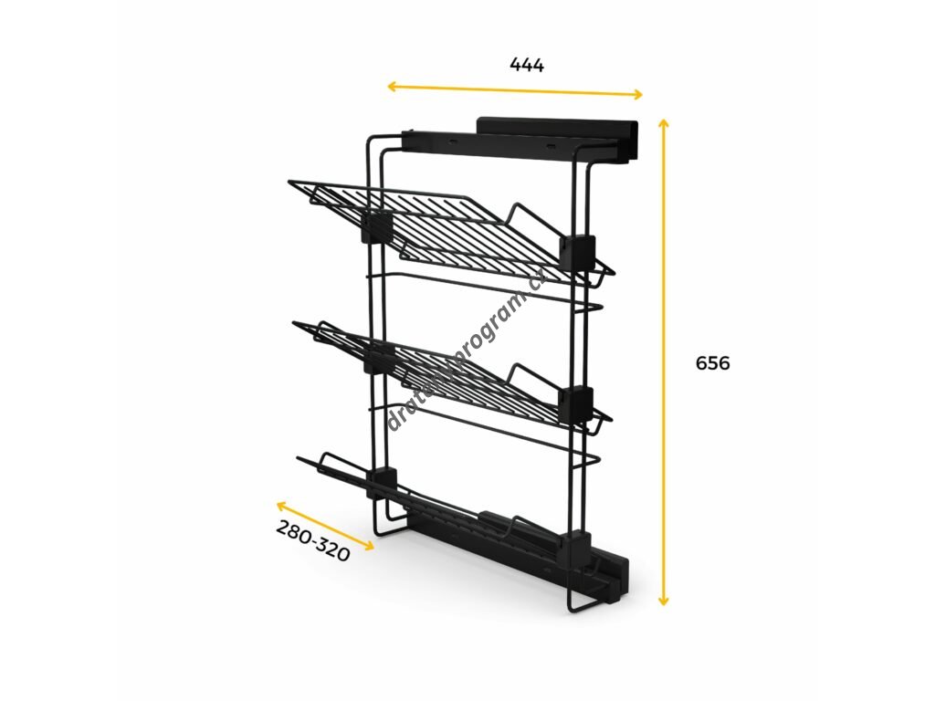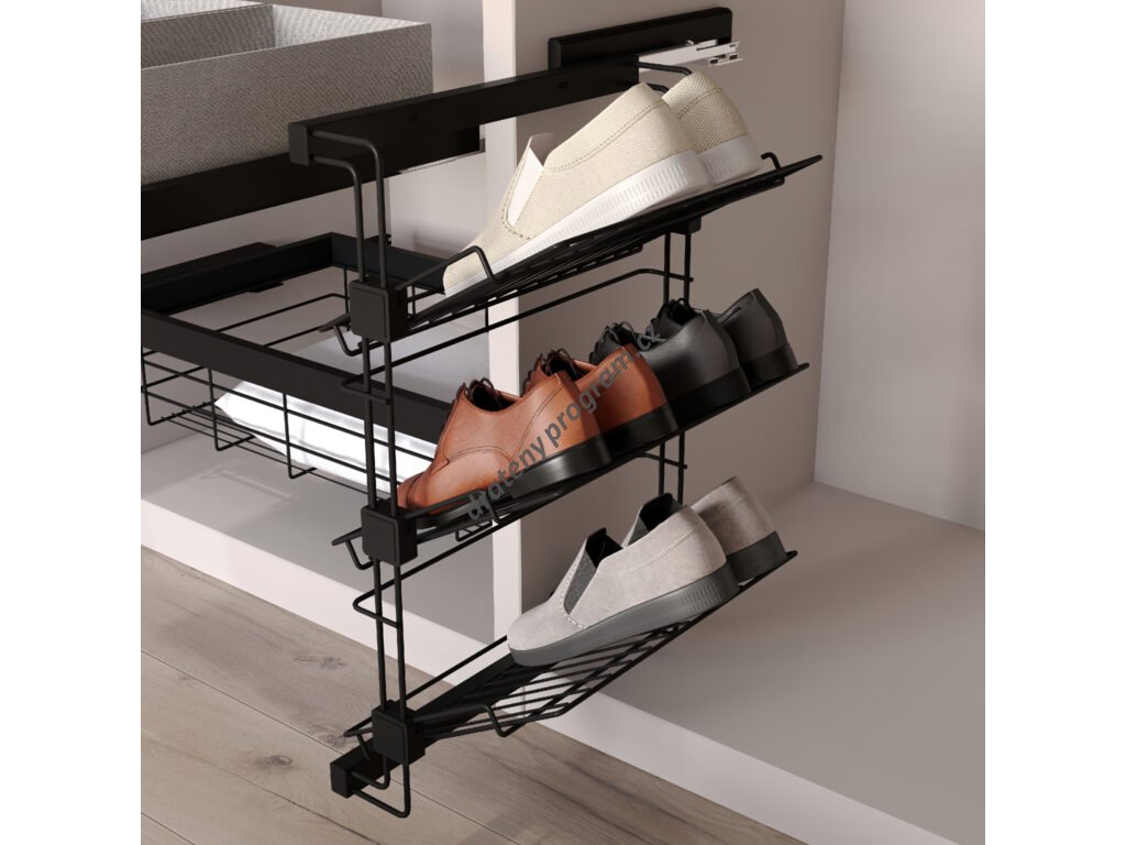 Výsuvný botník boční HACK s tl. dovřením, 320x444x656 mm, levý, černý epoxid