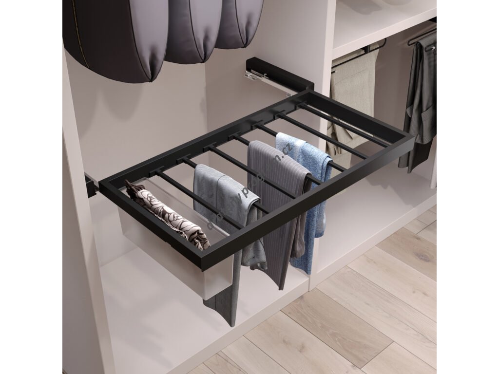 Výsuvný věšák na kalhoty HACK s tl. dovřením, 860-894x434x56 mm, černý epoxid