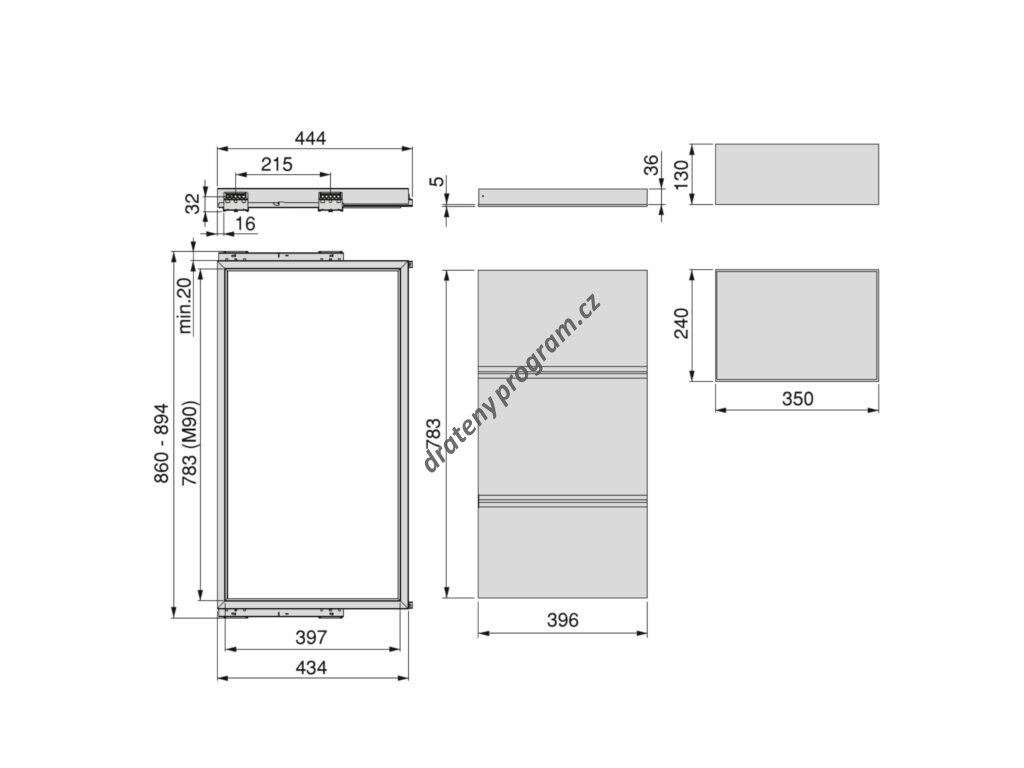Výsuvný organizér na doplňky HACK, 860-894x434x56 mm, kamenná šedá