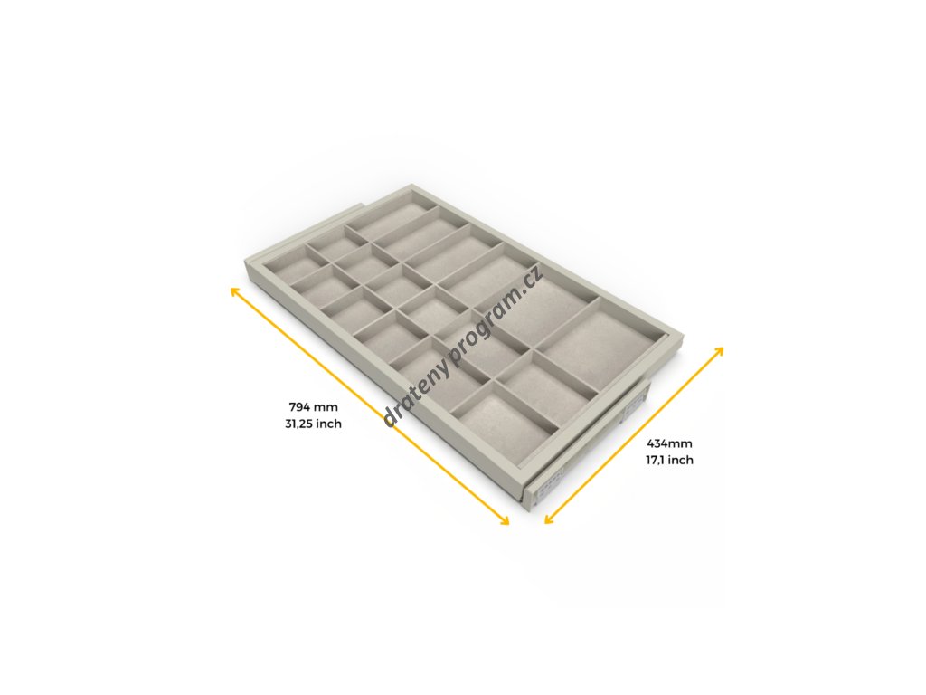 Výsuvný pořadač na doplňky HACK, 760-794x434x56 mm, kamenná šedá, šedá