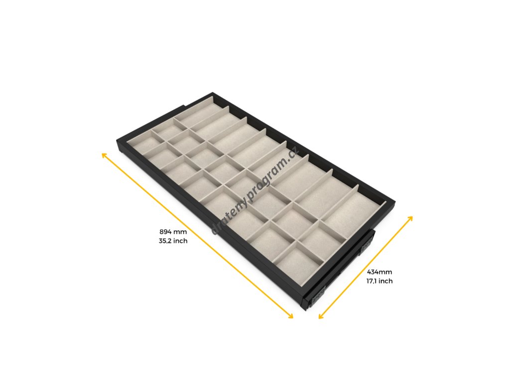 Výsuvný pořadač na doplňky HACK, 860-894x434x56 mm, černý epoxid, šedá