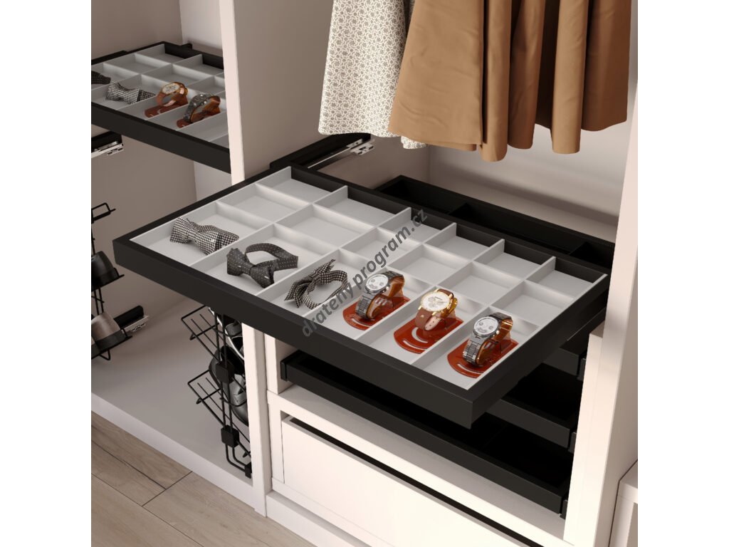 Výsuvný pořadač na doplňky HACK, 560-594x434x56 mm, černý epoxid, šedá