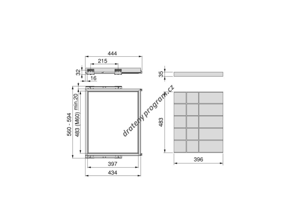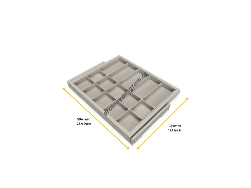 Výsuvný pořadač na doplňky HACK, 560-594x434x56 mm, kamenná šedá, šedá
