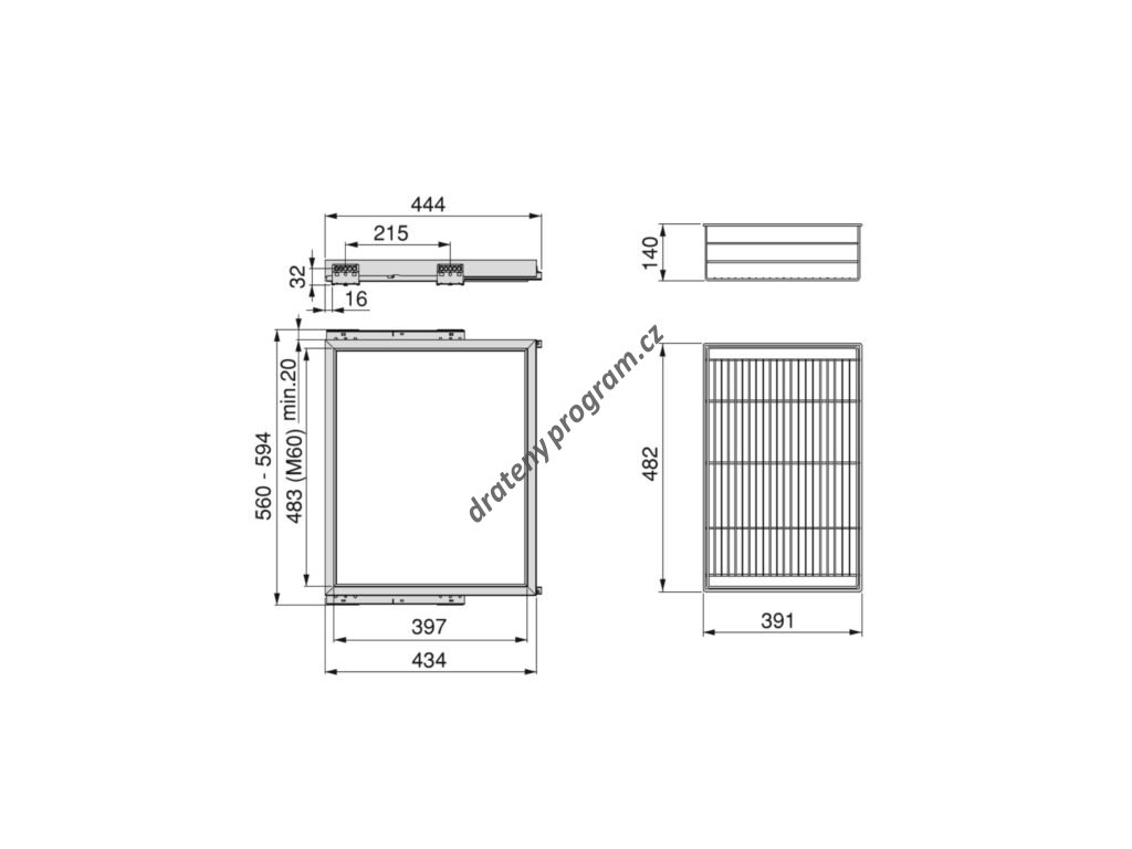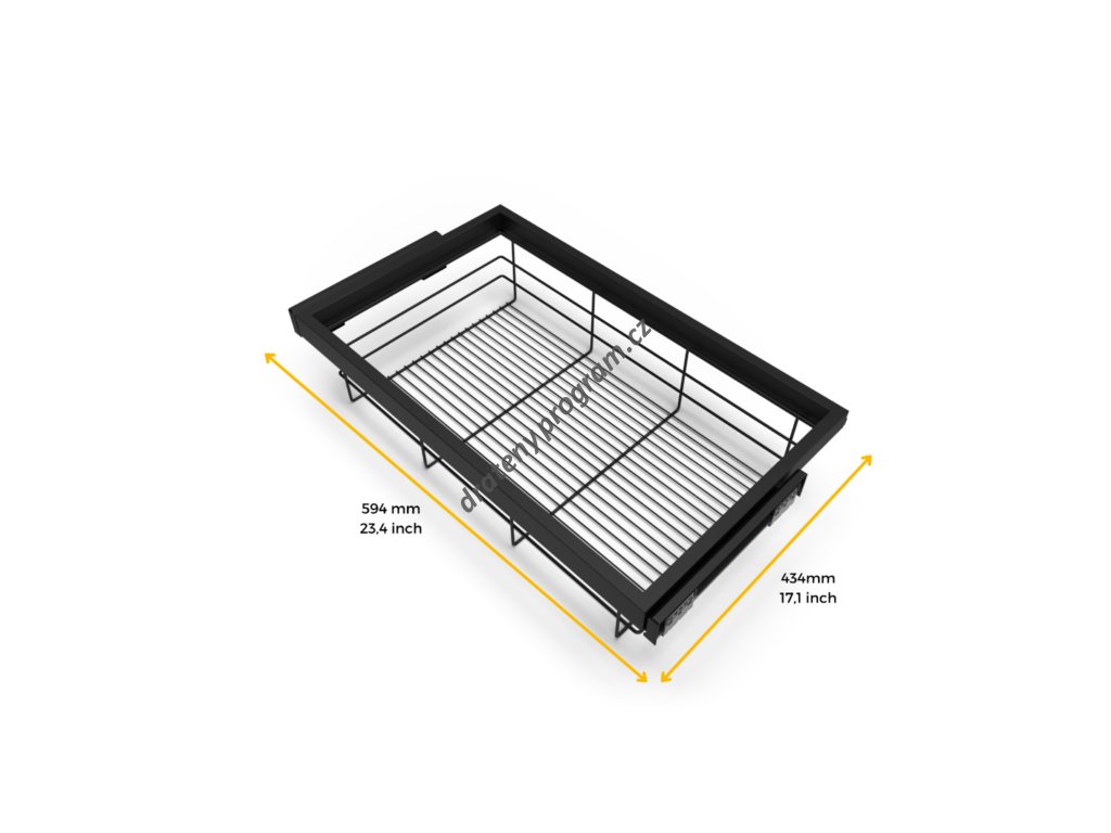 Výsuvný úložný koš HACK, 560-594x434x140 mm, černý epoxid