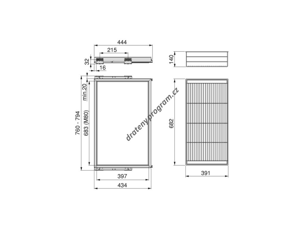 Výsuvný úložný koš HACK, 760-794x434x140 mm, černý epoxid