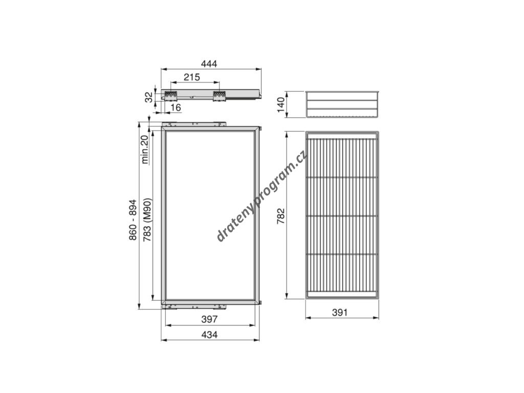 Výsuvný úložný koš HACK, 860-894x434x140 mm, kamenná šedá